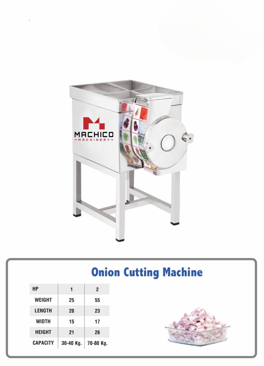 The 1 HP Onion / Chili Cutting Machine by Machico Machinery is a robust, high-speed solution designed for commercial kitchens, food industries, and bulk food processing units. This efficient machine ensures uniform slicing and chopping of onions, green chilies, red chilies, and similar vegetables with minimal effort. Powerful 1 HP Motor – Ensures high-speed cutting and long operational life. Stainless Steel Body – Rust-proof, food-grade material for hygiene and durability. High Output Capacity – Can process 100–150 kg/hr, ideal for large-scale operations.