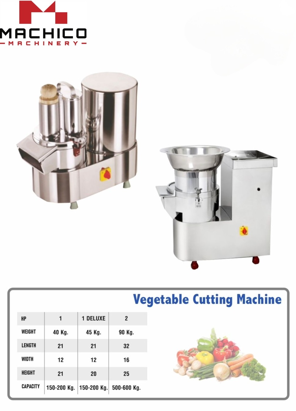 The 2 HP Vegetable Cutting Machine is a heavy-duty solution designed for high-volume food preparation in restaurants, industrial kitchens, hotels, and catering services. Built to handle continuous workloads, this machine ensures speed, accuracy, and uniformity across every batch of vegetables. Driven by a powerful 2 HP motor, it effortlessly processes a wide variety of vegetables, delivering precise results whether you need fine juliennes, thick slices, cubes, or shreds. Perfect for bulk chopping of onions, potatoes, carrots, cucumbers, cabbage, and more, it significantly reduces prep time while maintaining professional-grade consistency. Crafted from food-grade stainless steel, it guarantees hygiene, durability, and easy cleaning. The machine includes interchangeable blades for versatile cutting styles, making it adaptable for diverse culinary tasks. Heavy-duty 2 HP motor for fast and efficient cutting Processes large quantities of vegetables with ease Interchangeable stainless steel blades for multiple cutting options Hygienic, rust-proof, and easy-to-clean construction Designed for safety and user-friendly operation Ideal for continuous, commercial-scale usage
