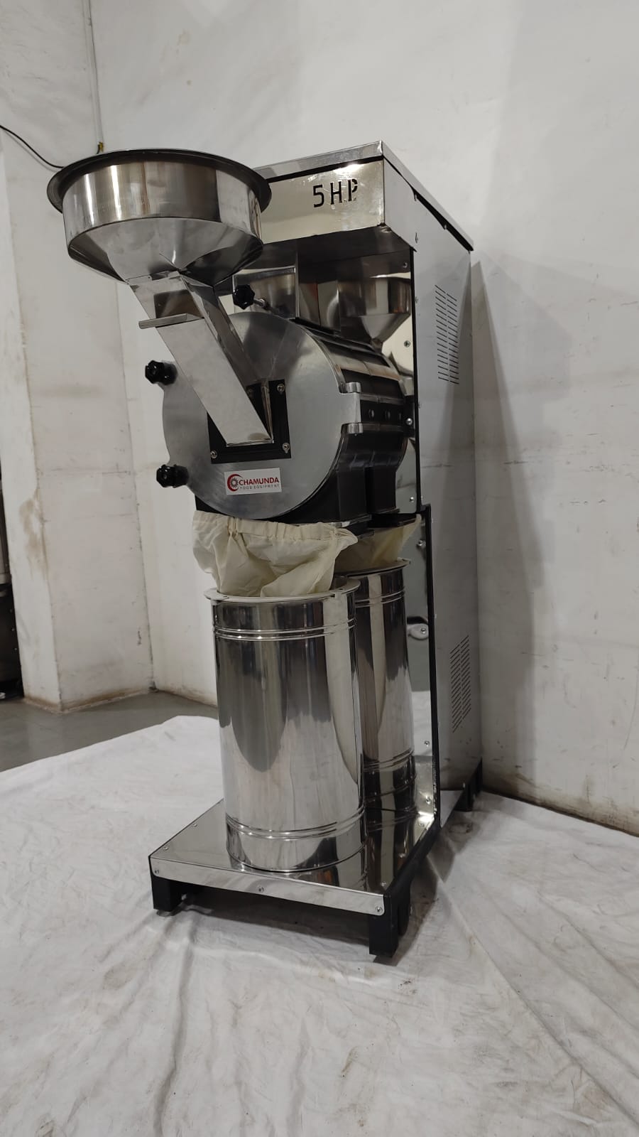 The 5 HP Pulverizer Machine from Machico Machinery is a high-performance grinding machine designed for medium to heavy-duty commercial use. Equipped with a 6-way stainless steel beater system and a powerful 5 HP motor, it can efficiently grind a wide range of dry materials like spices, grains, pulses, turmeric, and sugar with precision and speed. Made from 100% stainless steel, this pulverizer ensures maximum hygiene, durability, and long service life, making it ideal for food processing units, flour mills, sweet shops, and catering services.