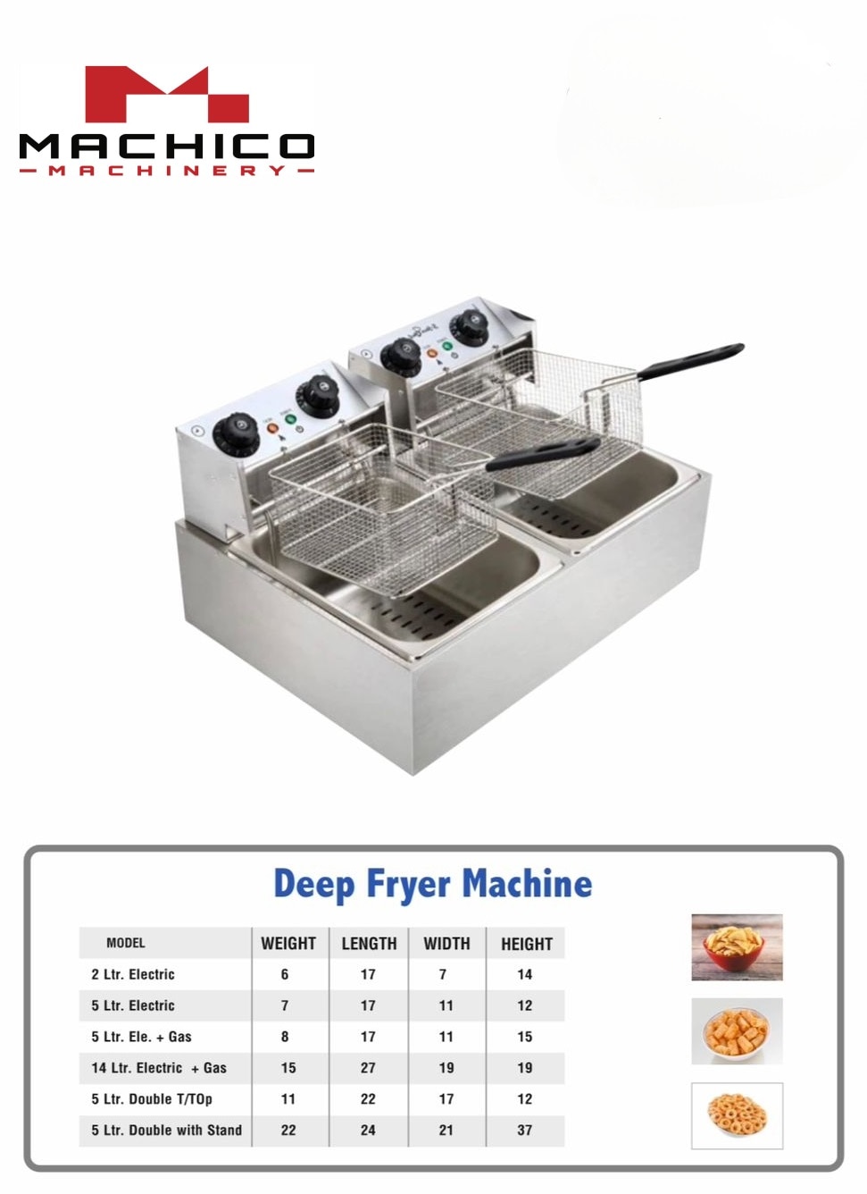 The 5 Litre Deep Fryer from Machico Machinery is a compact yet powerful frying solution designed for restaurants, food stalls, cafes, and commercial kitchens. Made with food-grade stainless steel, this fryer is perfect for preparing crispy snacks like French fries, samosas, nuggets, pakoras, and more — with efficient oil usage and precise temperature control. 5 Litre Oil Capacity – Ideal for small to medium-sized frying needs. Stainless Steel Body & Tank – Hygienic, durable, and easy to clean. Adjustable Temperature Control – Fry at your desired heat level for perfect results. Heating Indicator & Safety Thermostat – Ensures safe and consistent operation.