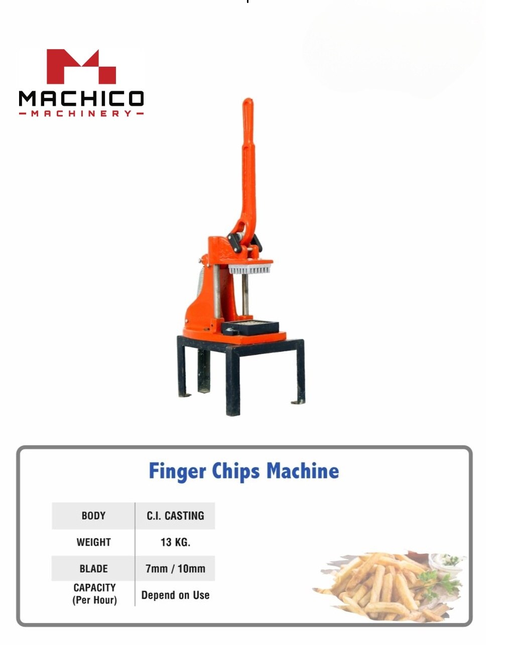 The Manual French Fries Cutting Machine from Machico Machinery is a compact, durable, and easy-to-use solution for slicing potatoes into perfect French fries. Designed for small restaurants, food stalls, and fast-food joints, this machine eliminates the hassle of hand-cutting and delivers uniform fry shapes every time — without electricity. Manual Operation – No electricity needed; cost-effective and ideal for mobile use. Uniform Cutting – Delivers evenly sized French fries for fast and even frying. Heavy-Duty Blades – Sharp, stainless steel blades for smooth cutting with less effort. Strong Build Quality – Made with food-grade stainless steel and heavy cast metal base. Easy to Operate – Just place the potato and press the lever for instant cutting. Portable & Compact – Space-saving design for countertop or roadside use.