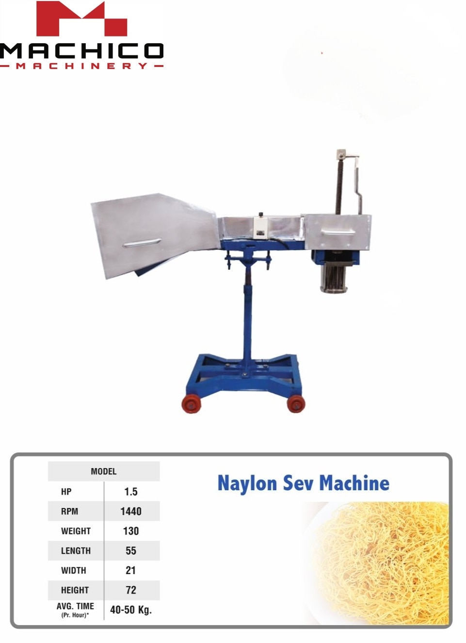 The Nylon Sev Machine is specially designed for producing crispy, fine-textured nylon sev, a popular Indian snack. Ideal for namkeen factories, snack shops, and commercial kitchens, this machine allows you to create uniform sev quickly and efficiently. With its heavy-duty stainless steel construction and interchangeable jali system, the machine ensures hygiene, consistency, and long-lasting performance. Just load the dough, select the right die, and get perfect nylon sev with minimal effort. Produces fine, uniform nylon sev Stainless steel body and drum for food safety Heavy-duty construction for continuous use Easy-to-change jali for different thickness options User-friendly and low maintenance